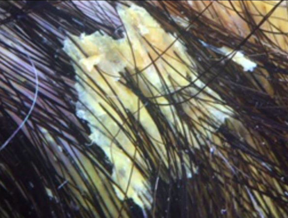 Pityriasis amiantacea is an eczematous condition of the scalp in which thick tenaciously adherent scale infiltrates and surrounds the base of a group of scalp hairs.